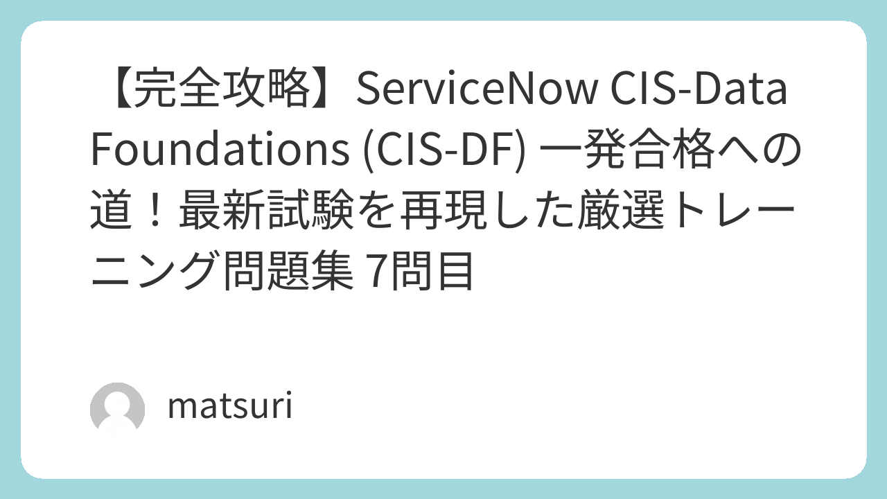 【合格直結】ServiceNow CIS-Data Foundations (CIS-DF) 攻略のすべて。一発合格者が作成した的中再現問題集100問|matsuri
